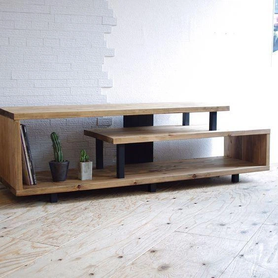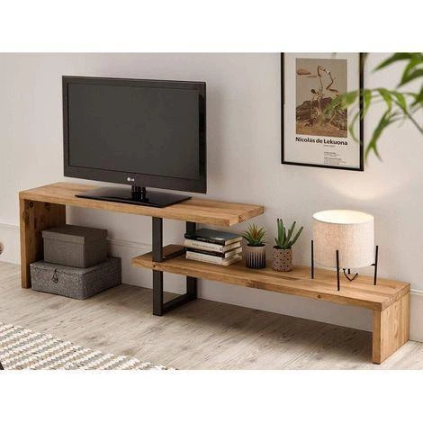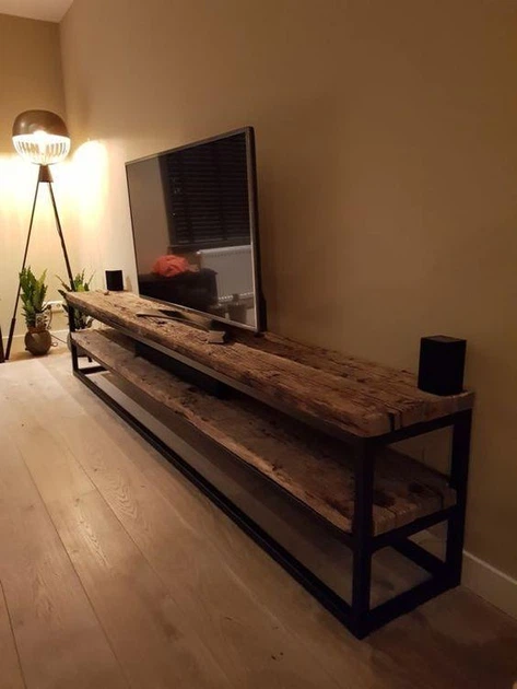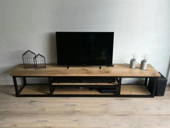 Дизайнерська тумба для телевізора в стилі Loft 140х20х60h Чорний/Дерево ATL1435