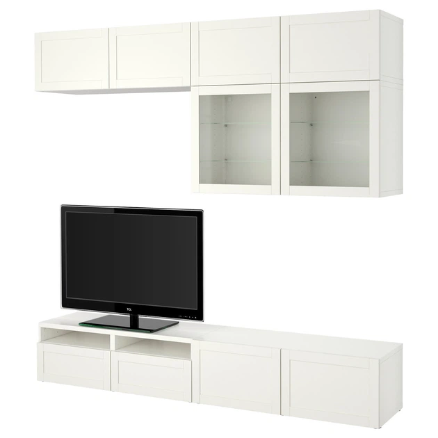 Комбінація на ТБ IKEA БЕСТО, Скляні двері, білий, Ханвікен білий прозоре скло, 240x42x231 см,