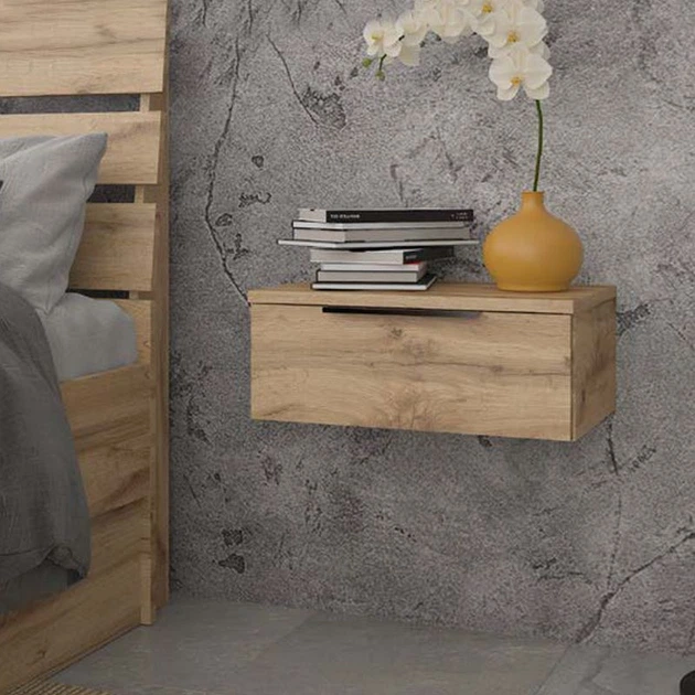 Тумба настінна, тумбочка в спальню навісна з висувним ящиком M-34, дуб сонома