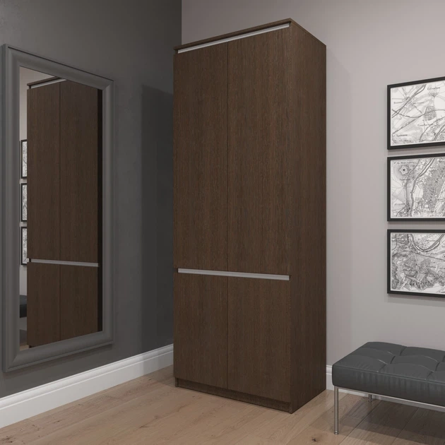 Шафа для одягу та взуття зі штангою та полицями, з фасадами без ручок R-10, венге темний/білі планки