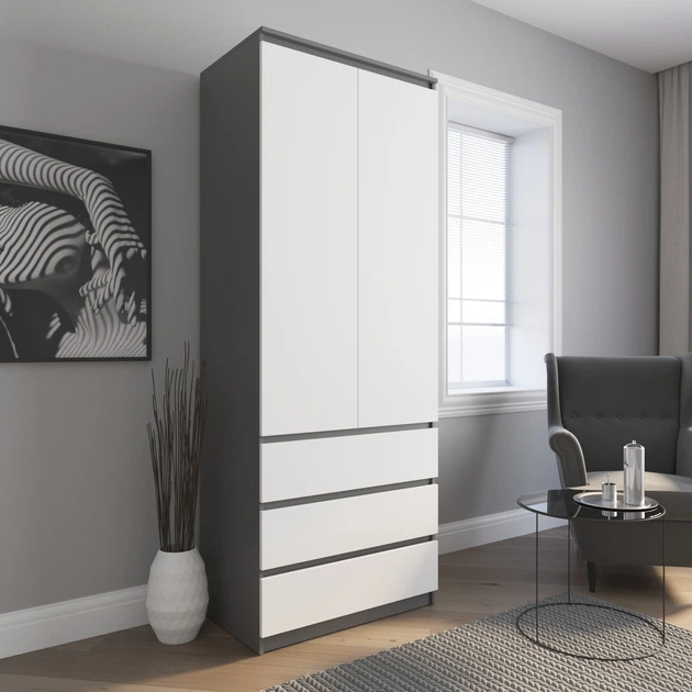 Шафа VAYS для одягу зі штангою на 3 висувних шухляди з фасадами без ручок R-9 Антрацит / Білий фасад