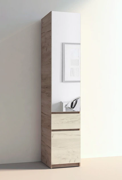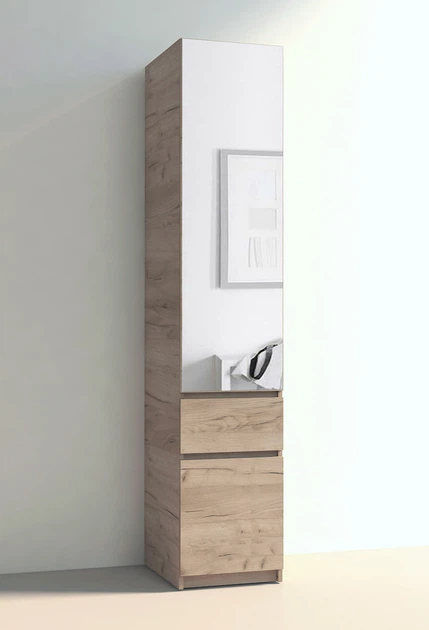 Шафа пенал із дзеркалом Брайт Мастер Форм 400 х 520 х 2000h Дуб крафт сірий / Дуб крафт білий (Телескопічні напрямні) 20407