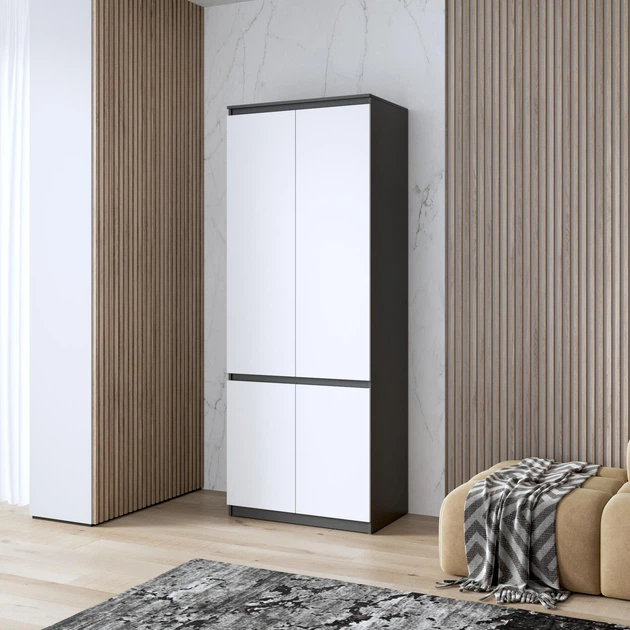 Шафа для одягу з полицями, фасади без ручок R-24, антрацит/білі фасади