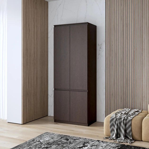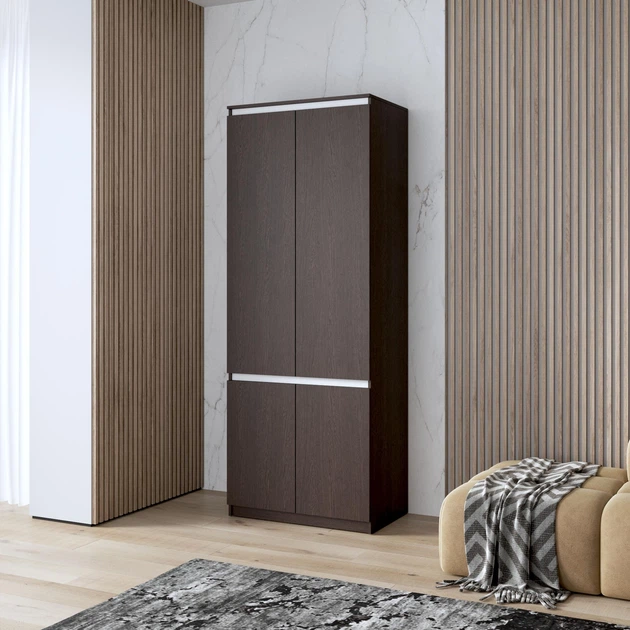 Шафа для одягу з полицями, фасади без ручок R-24, венге темна