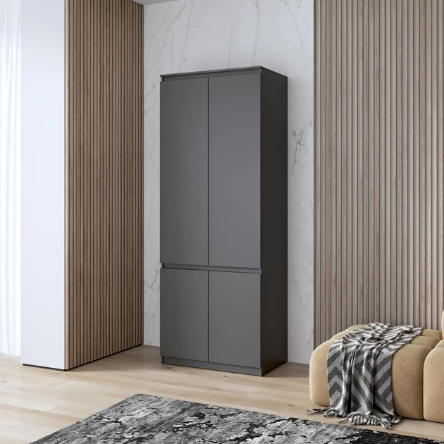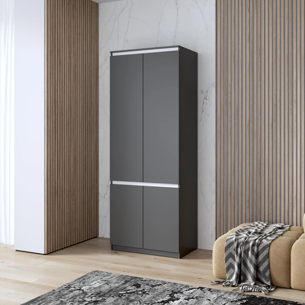 Шафа для одягу з полицями, фасади без ручок R-24, антрацит