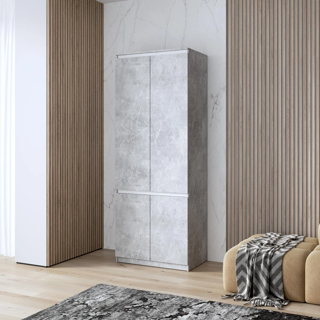 Шафа для одягу з полицями, фасади без ручок R-24, бетон