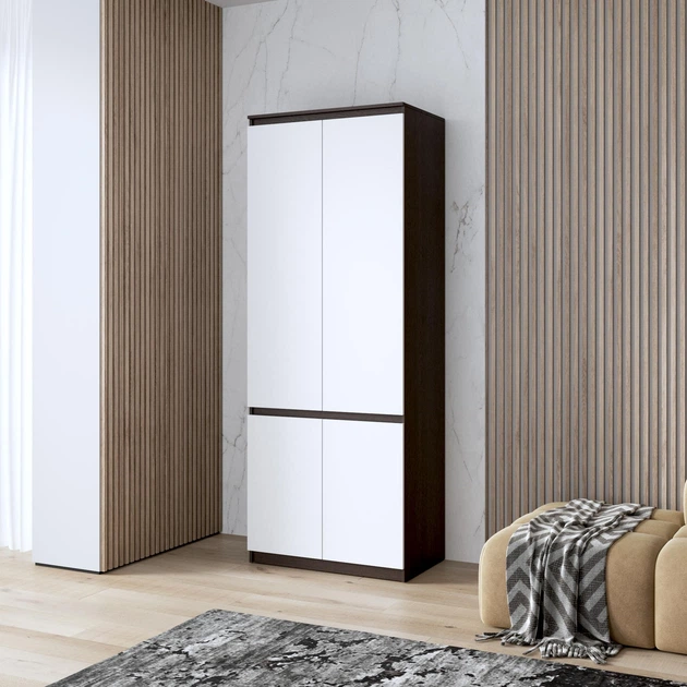 Шафа для одягу з полицями, фасади без ручок R-24, венге темний/білі фасади