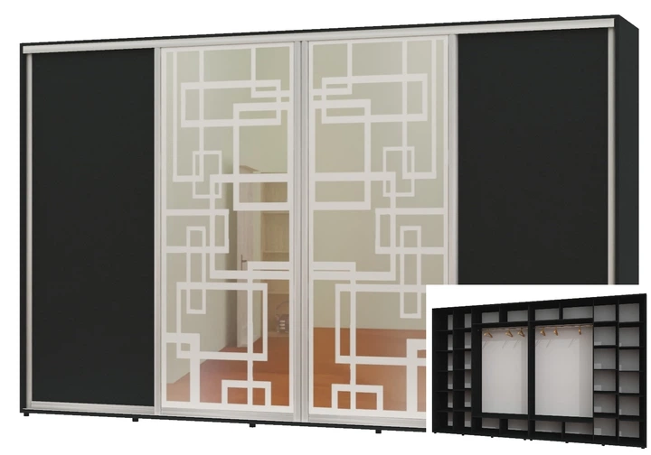 Шафа-купе чотиридверна Алекса 370*60*230 Антрацит 2 ДСП/2 Дзеркала з піскострумним малюнком