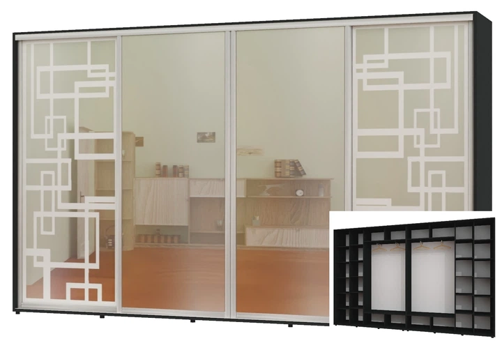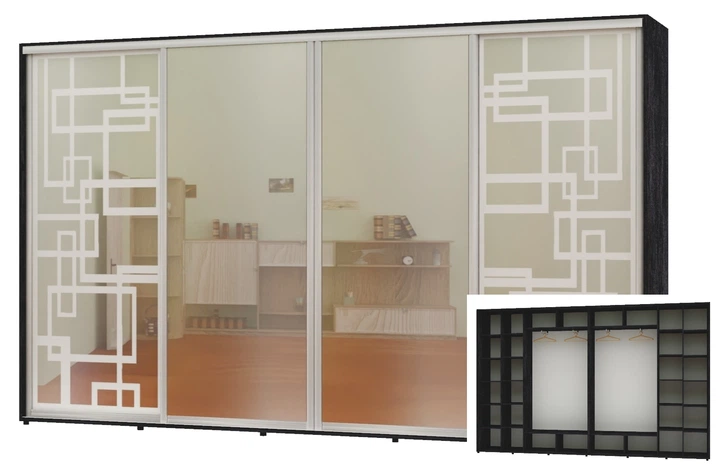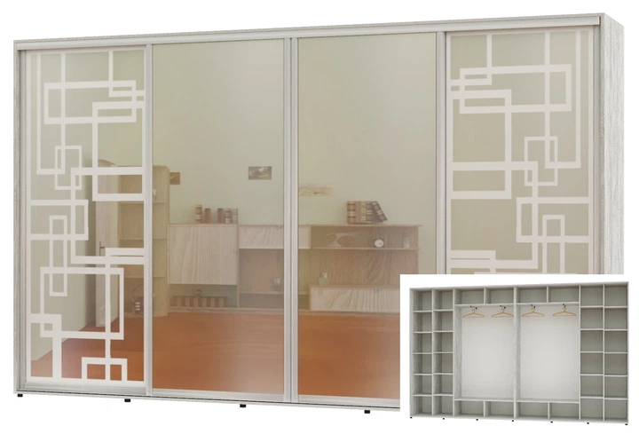 Шафа-купе чотиридверна Алекса 410*45*230 Індастріал 2 Дзеркала з піскострумним малюнком/2 Дзеркала