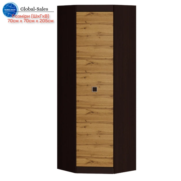 Шафа кутова 193х70х70 см. Гардеробна шафа зі штангою та полицями у передпокій або спальню Шамоні темний