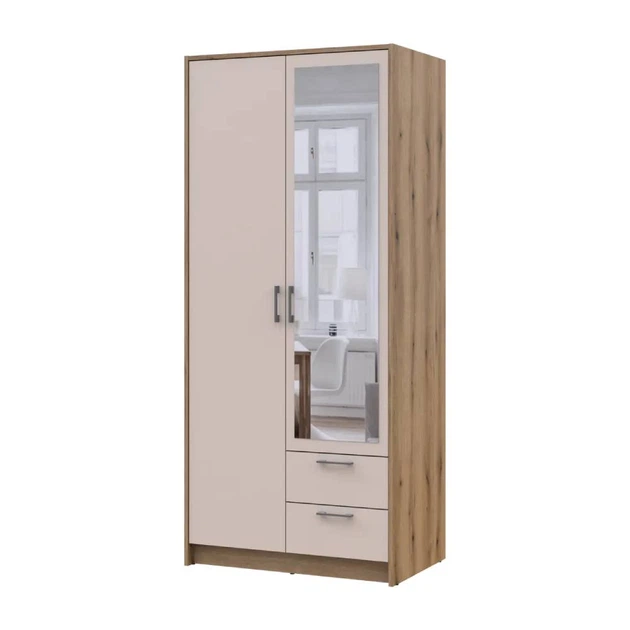 Шафа для одягу Doros Ронді з дзеркалом Дуб Артизан/Кашемір 2ДСП 82х52х195 DRS-011672 (80737807)