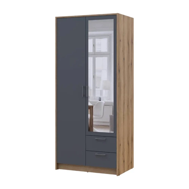 Шафа для одягу Doros Ронді з дзеркалом Дуб Артизан/Графіт 2ДСП 82х52х195 DRS-011669 (80737806)