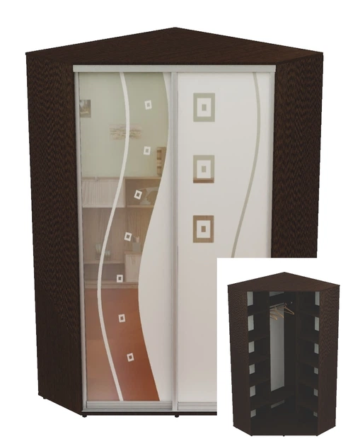 Шафа-купе дводверна кутова Алекса 150*150*240 Венге магія ДСП/Дзеркало з піскострумним малюнком Угол-5