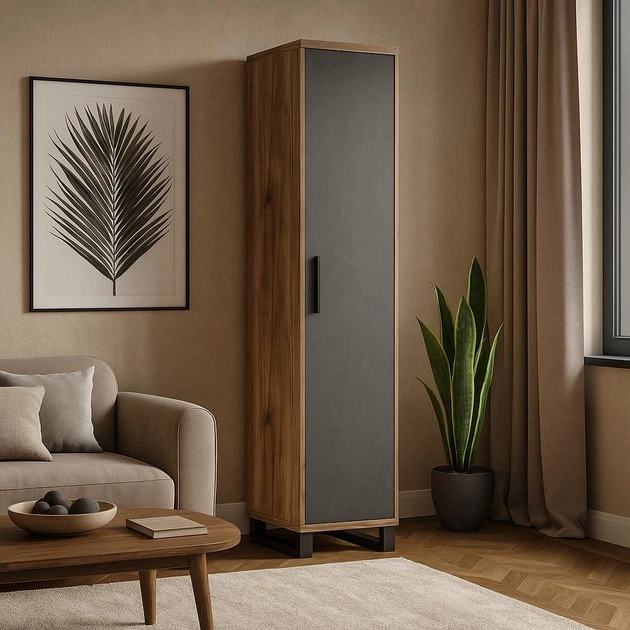 Стильний місткий пенал у стилі лофт у вітальню Меблі Сервіс "Омега" 55х43х200 см дуб табако-матера
