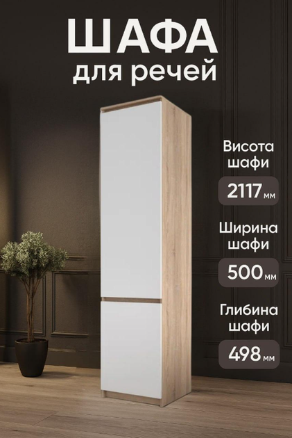 Закритий пенал для дому зі штангою, шафа для речей із ДСП II FT-218 Дуб+білий FT-218D+B