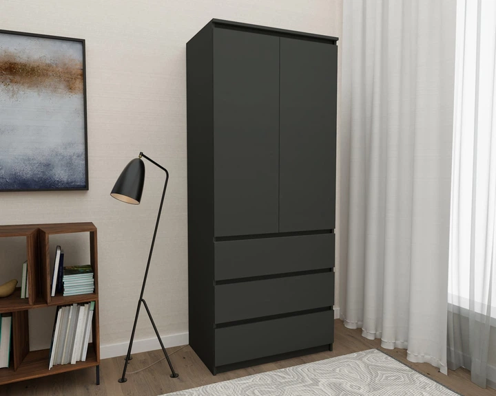 Шафа для одягу LT-210 на 3 висувних ящика зі штангою, фасади без ручок Антрацит + Білий Ш 803 / В 2117 / Г 502 мм, Nikoshop