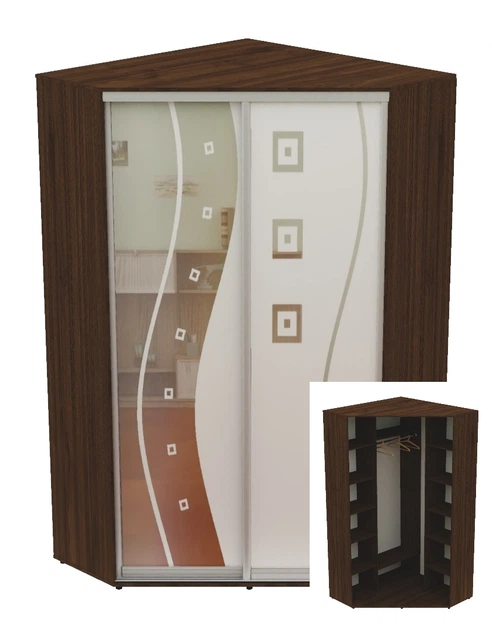 Шафа-купе дводверна кутова Алекса 130*130*240 Горіх лісовий Дзеркало з піскострумним малюнком Угол-3