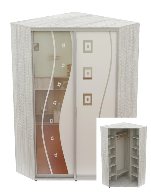 Шафа-купе дводверна кутова Алекса 130*130*240 Сосна Натті Дзеркало з піскострумним малюнком Угол-3
