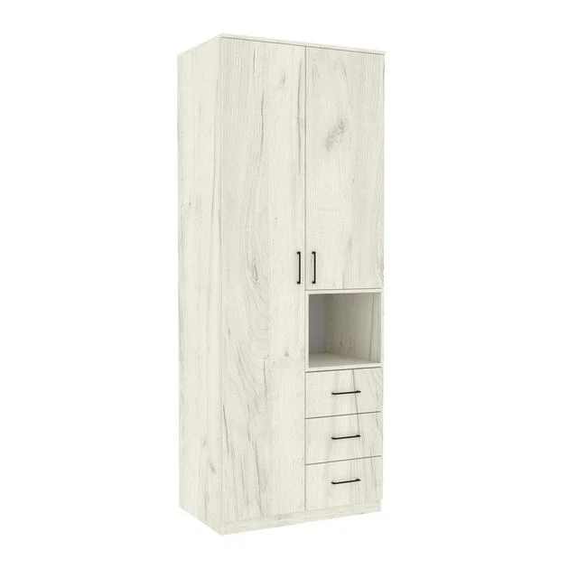 Шафа розпашна для одягу з 3 шухлядми Tetris Т 1 Дуб крафт білий 80х52х210 см