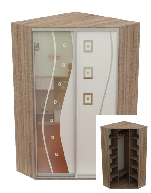 Шафа-купе дводверна кутова Алекса 140*140*220 Дуб Сонома трюфель Дзеркало з піскострумним малюнком Угол-4