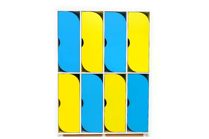 Шафа для одягу 8-секцій DS-54 на металевих регульованих опорах жовта синя