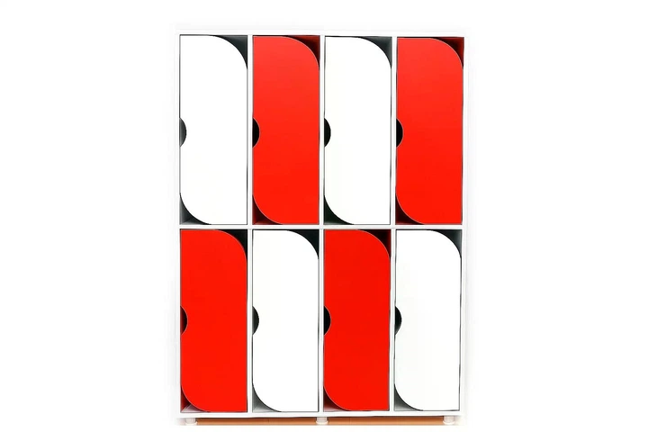 Шафа для одягу 8-секцій DS-54 на металевих регульованих опорах біла червона