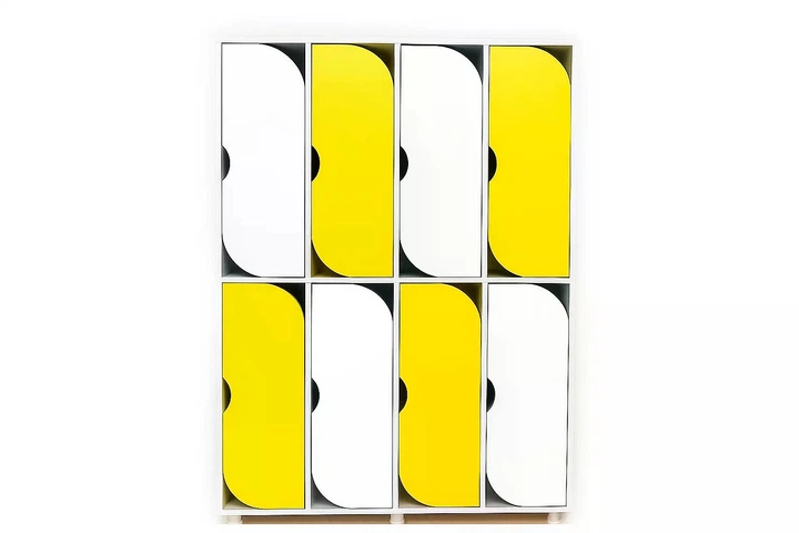 Шафа для одягу 8-секцій DS-54 на металевих регульованих опорах жовта біла