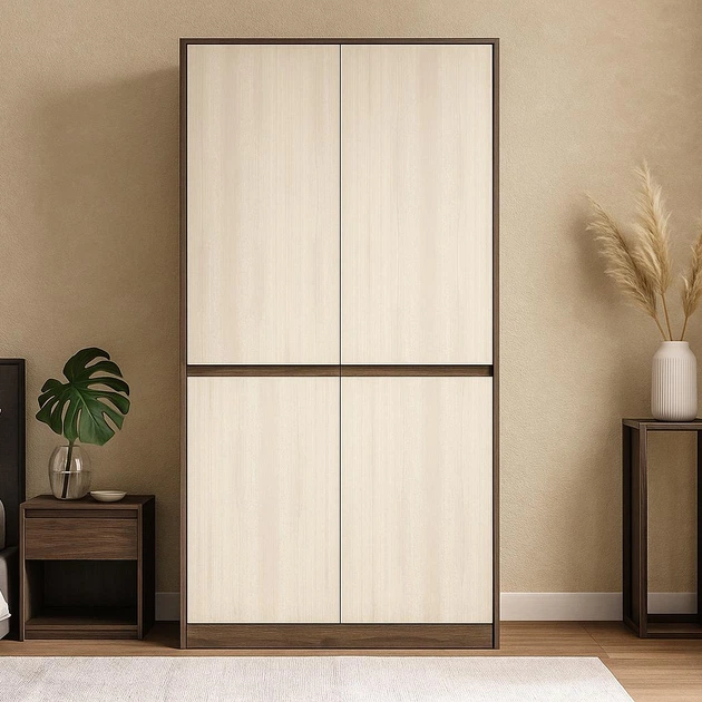 Висока стильна сучасна дводверна розпашна платтяна шафа односекційна з штангою для розвішування одягу в спальню з ДСП 105х21