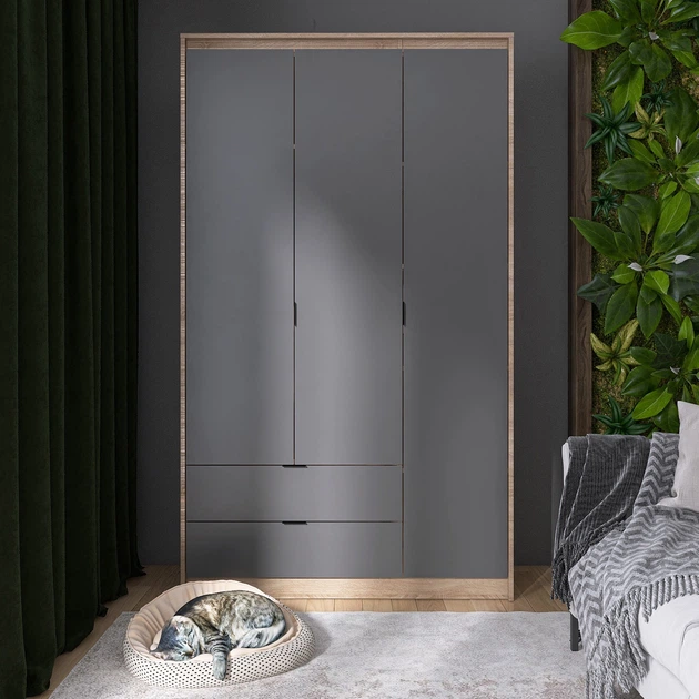 Шафа розпашна для одягу з висувними шухлядами (полиці- полиці) Еверест Сіті-1200 120,2х50х204,6 см Дуб сонома/Графіт (TQP-07