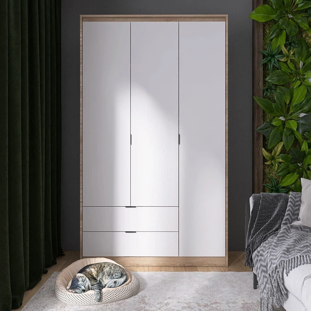 Шафа розпашна для одягу з висувними шухлядами (полиці- полиці) Еверест Сіті-1200 120,2х50х204,6 см Дуб сонома/Білий (TQP-071
