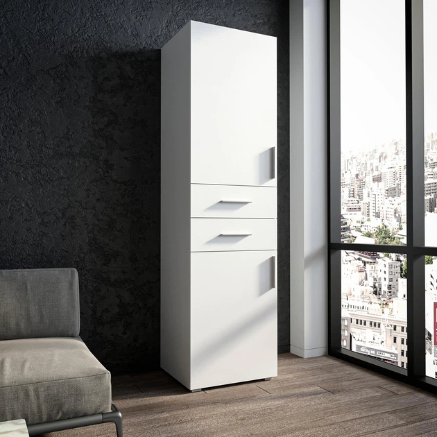 Шафа пенал з шухлядами на 4 полички ламінована ДСП 21.8х52х60 см Білий