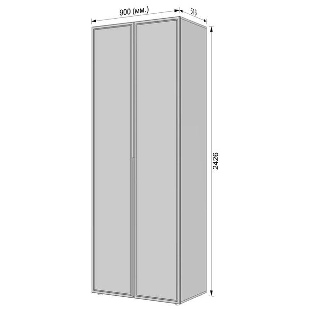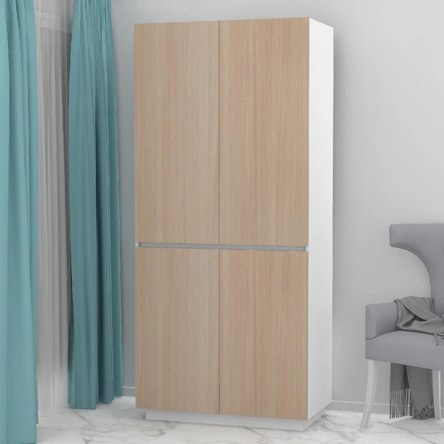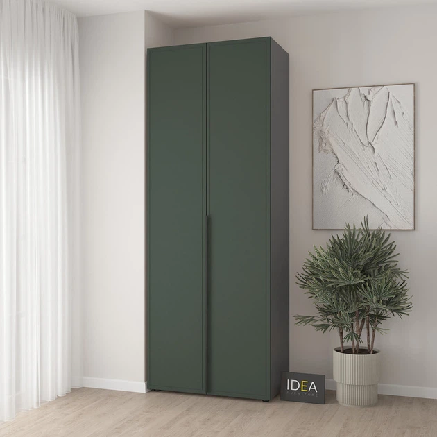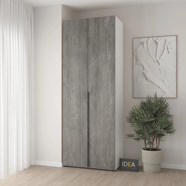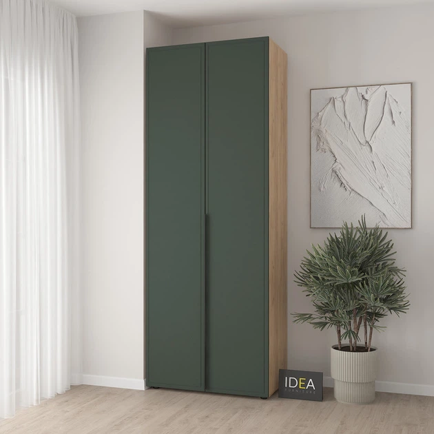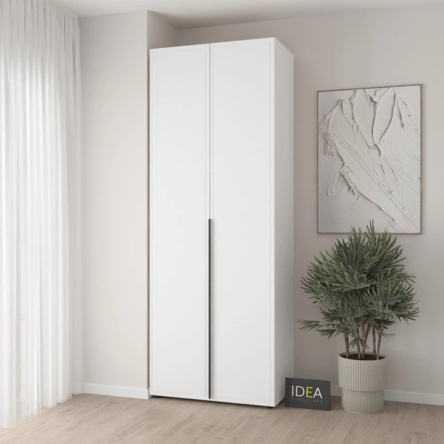 Сучасна висока дводверна шафа розпашна 100 см для одягу з полицями та штангою без ручок у маленьку спальню дитячу вітальню Л