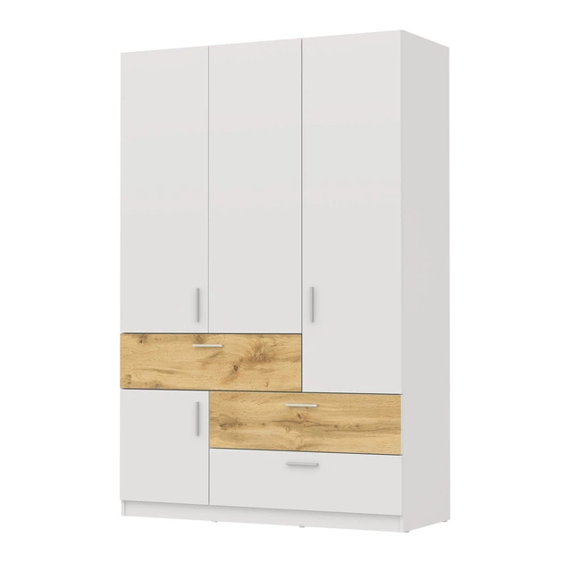 Шафа для одягу розпашна MEBLIBUD ШИК чотирьохдверна з 3-ма висувними ящиками 137.8х55х210см біла з фасадами дуб аппалачі.