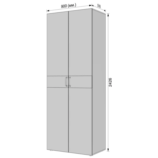 Шафа розпашна дводверна зі штангою та полицями для одягу в спальню 1002x2100x570 мм Бетон тефра (mr-14-bf)