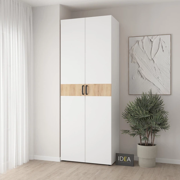 Шафа для одягу з полицями С-9.4 Білий/Дуб Крафт IDEA
