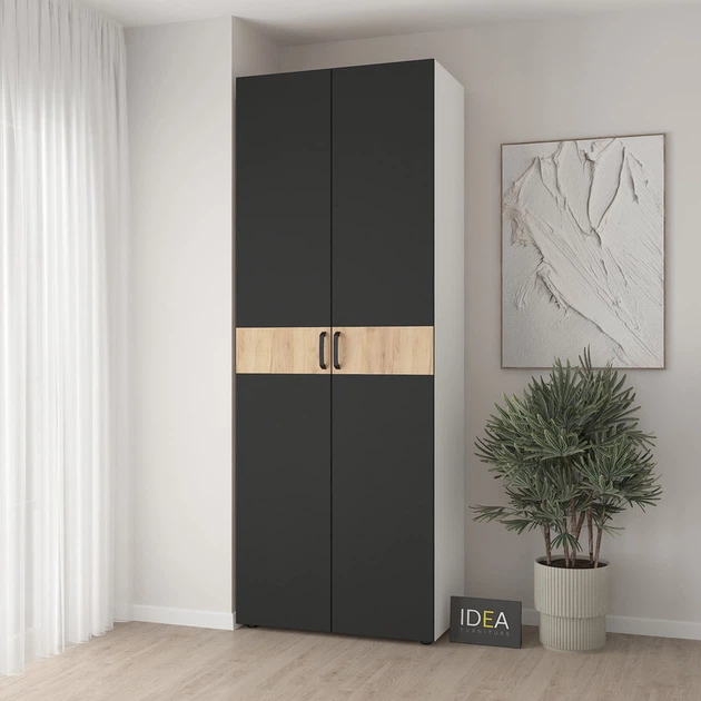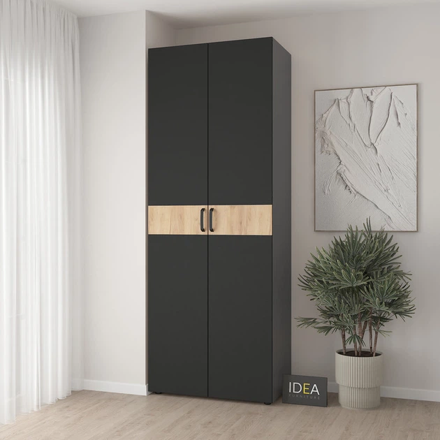 Шафа для одягу з полицями С-9.4 Антрацит/Чорний IDEA