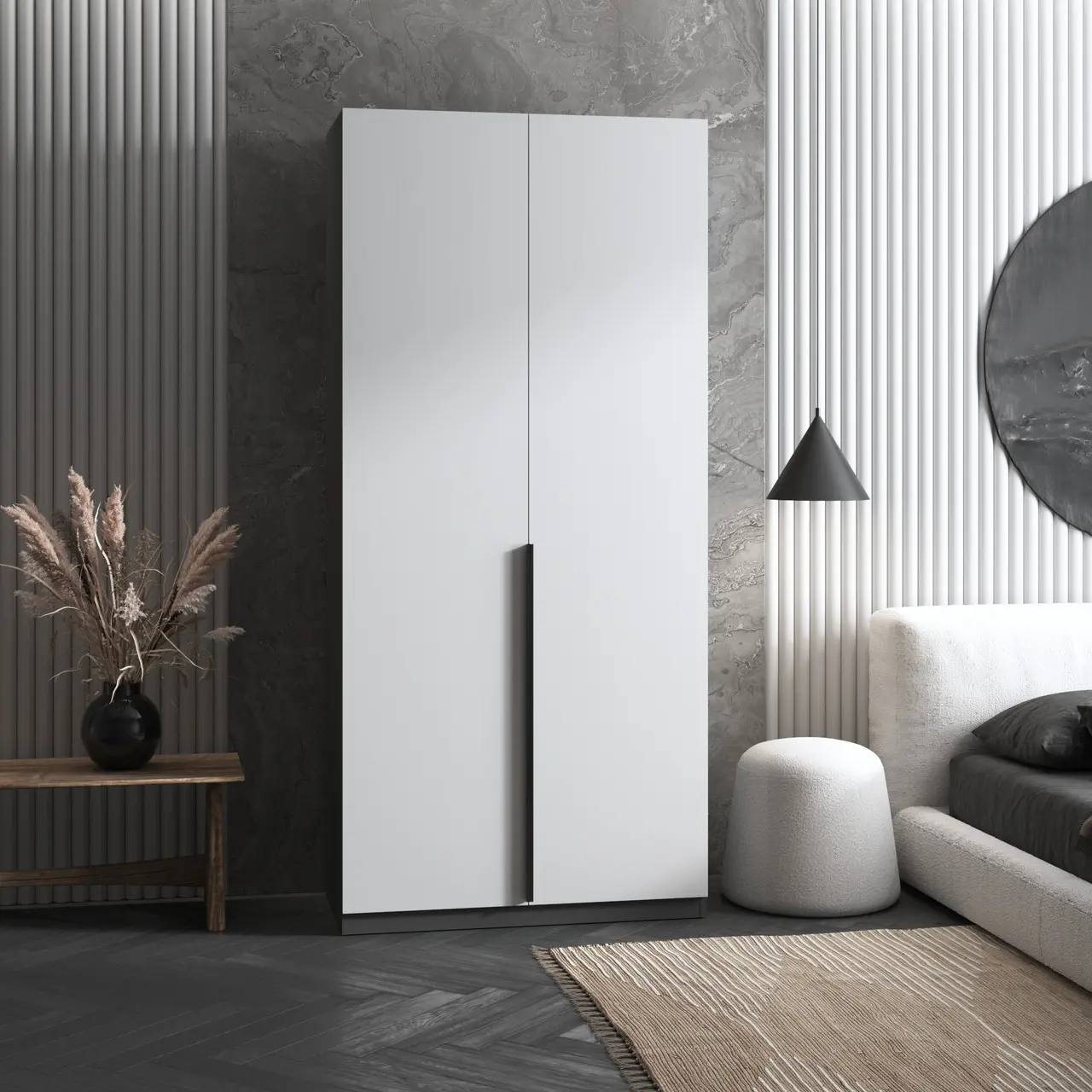Шафа для одягу Vays M-27 Антрацит-Білий фасад, з штангою та полицями, ЛДСП, 100×50×220 см - для спальні, вітальні, передпоко