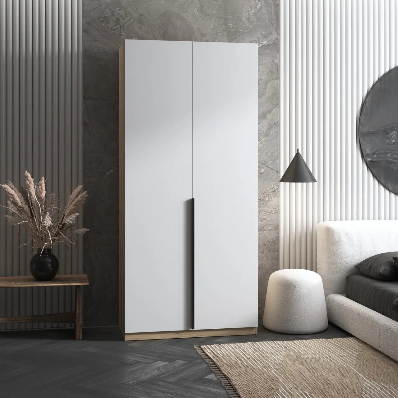 Шафа для одягу Vays M-26 Дуб Сонома-Білий фасад, з полицями, ЛДСП, 100×50×220 см - для спальні, вітальні, передпокою