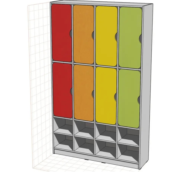 Шафа для одягу DS-55 8-секцій на металевих регульованих опорах біла червона