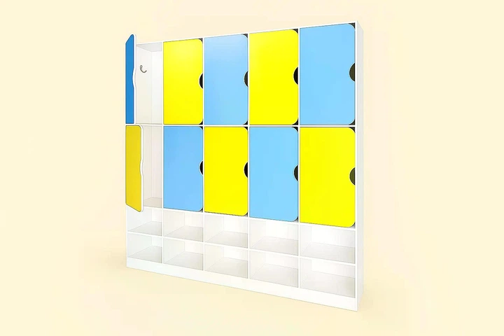 Шафа для одягу DS-55 10-секційна з полицею для взуття жовта синя