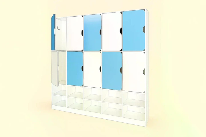 Шафа для одягу DS-55 10-секційна з полицею для взуття синя біла