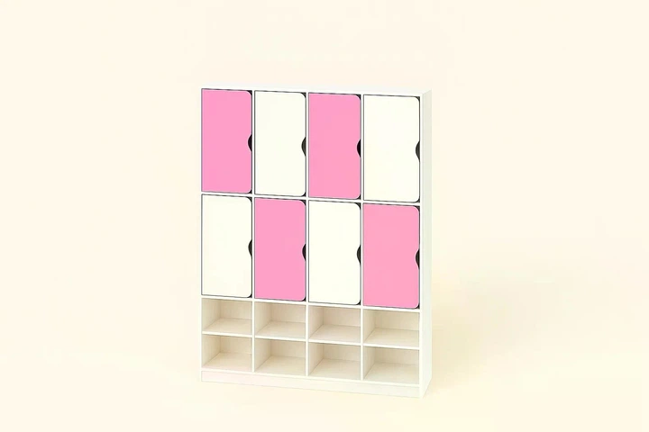 Шафа для одягу DS-55 8-секцій на металевих регульованих білий рожевий