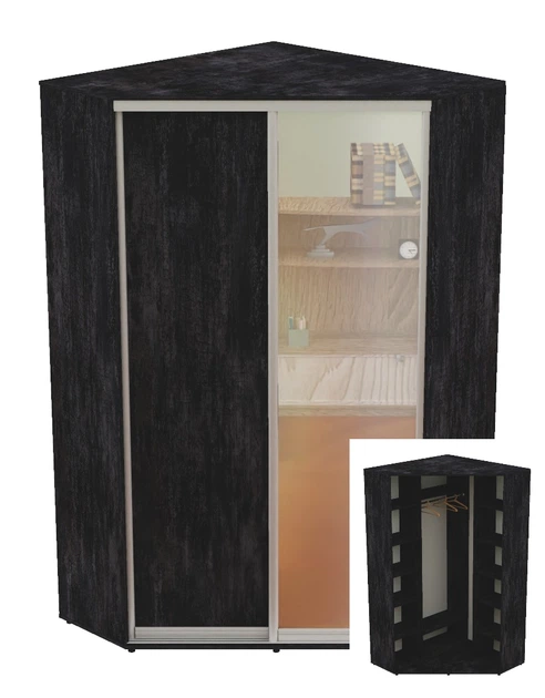 Шафа-купе дводверна кутова Алекса 150*150*230 см Антрацит ДСП + Дзеркало Кут-5