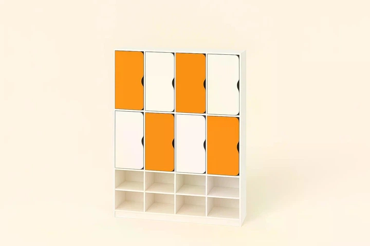 Шафа для одягу DS-55 8-секцій на металевих регульованих опорах біла оранжева