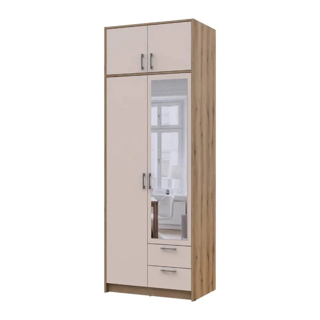Шафа для одягу Doros Ронді з антресоллю і дзеркалом Дуб Артизан/Кашемір 2ДСП 82х52х236 DRS-011678 (80737811)