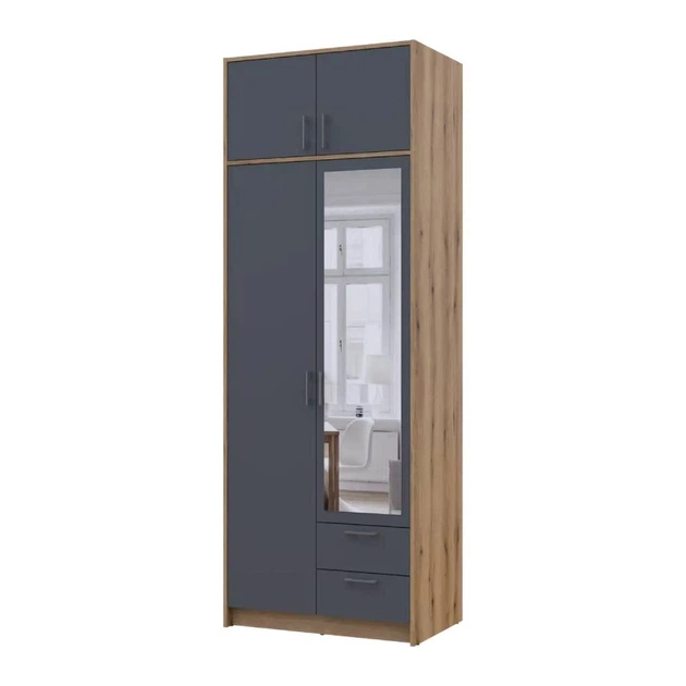 Шафа для одягу Doros Ронді з антресоллю і дзеркалом Дуб Артизан/Графіт 2ДСП 82х52х236 DRS-011675 (80737810)