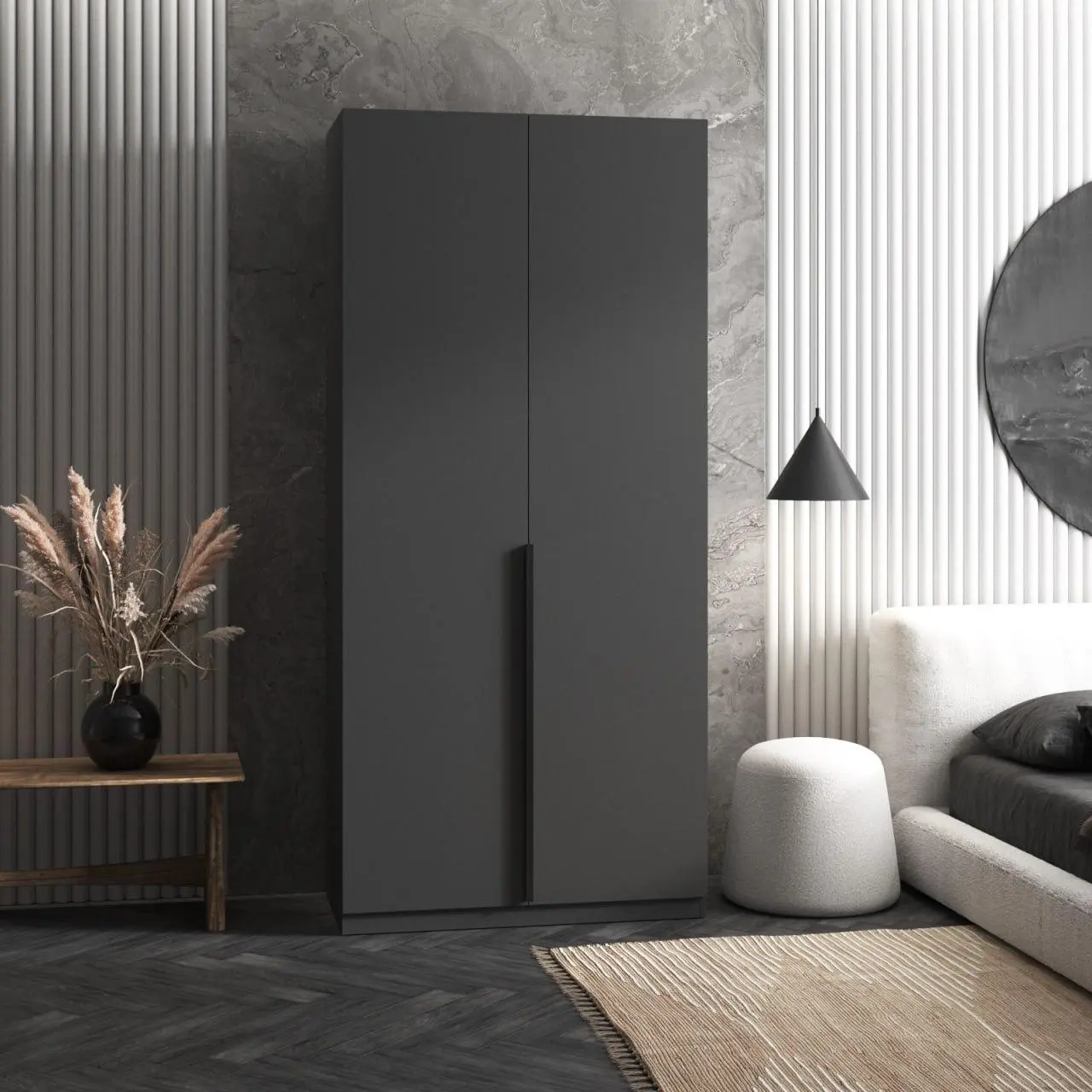 Шафа для одягу Flamecame зі штангою на 2 двері у передпокій FR-04 Антрацит