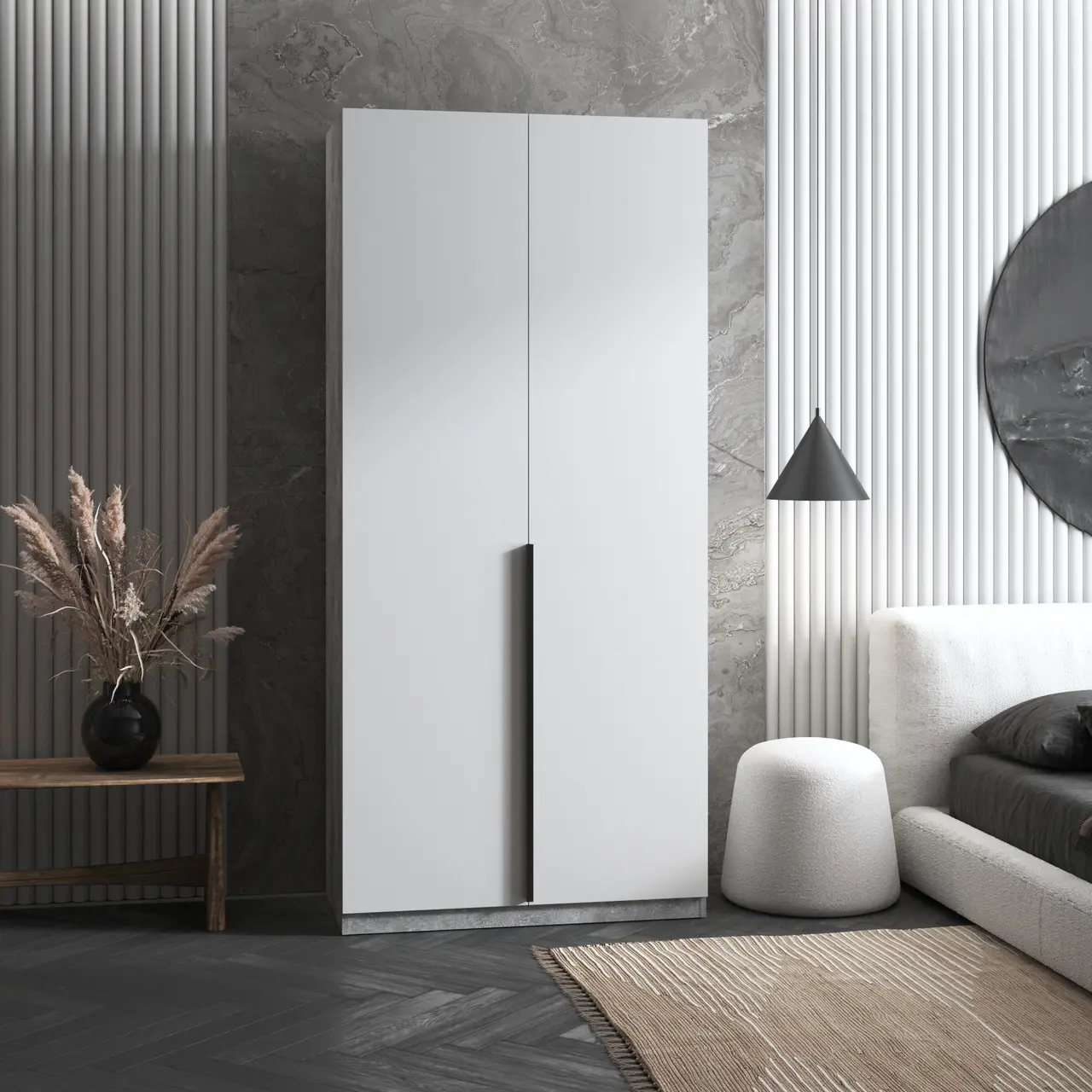Шафа для одягу Vays M-27 Бетон-Білий фасад, з штангою та полицями, ЛДСП, 100×50×220 см - для спальні, вітальні, передпокою