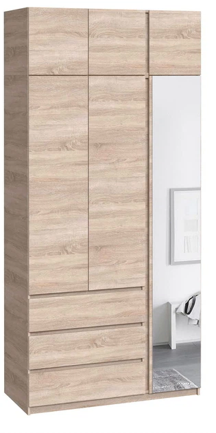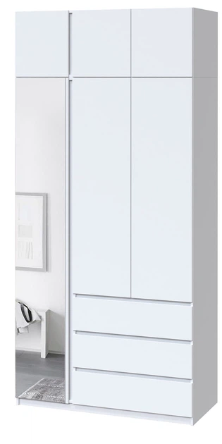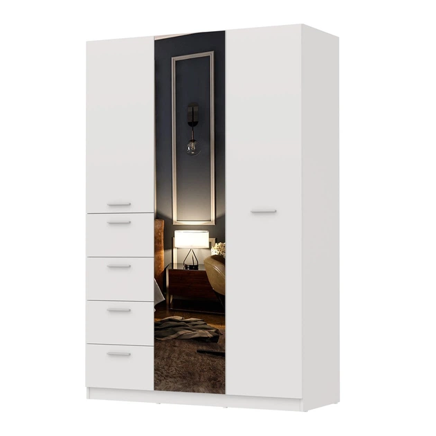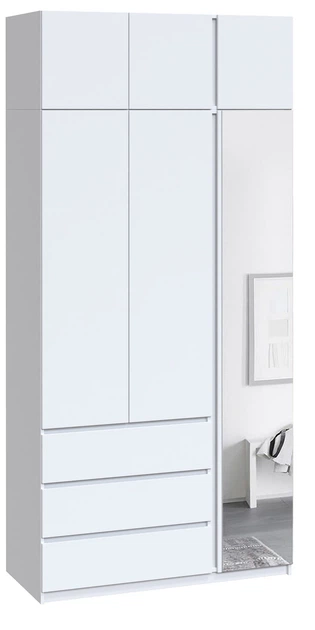 Шафа для одягу розпашна MEBLIBUD ШИК трьохдверна з дзеркалом з 4-ма висувними ящиками 137,8х55х210 см Білий