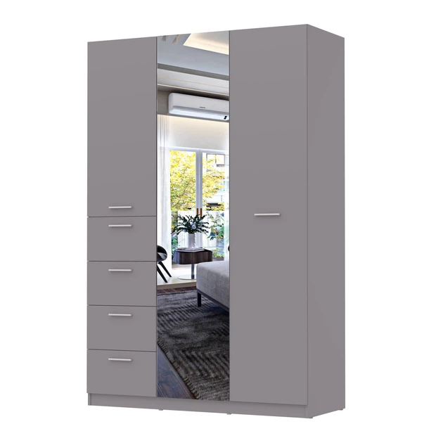 Шафа для одягу розпашна MEBLIBUD ШИК трьохдверна з дзеркалом з 4-ма висувними ящиками 137,8х55х210 см Антрацит